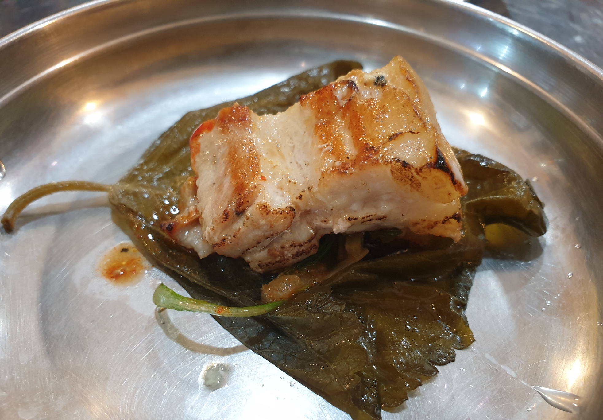 느끼하지 않고 고기 풍미 가득하게 고기만 즐기다가 갈치속젓에 찍어 먹습니다.
