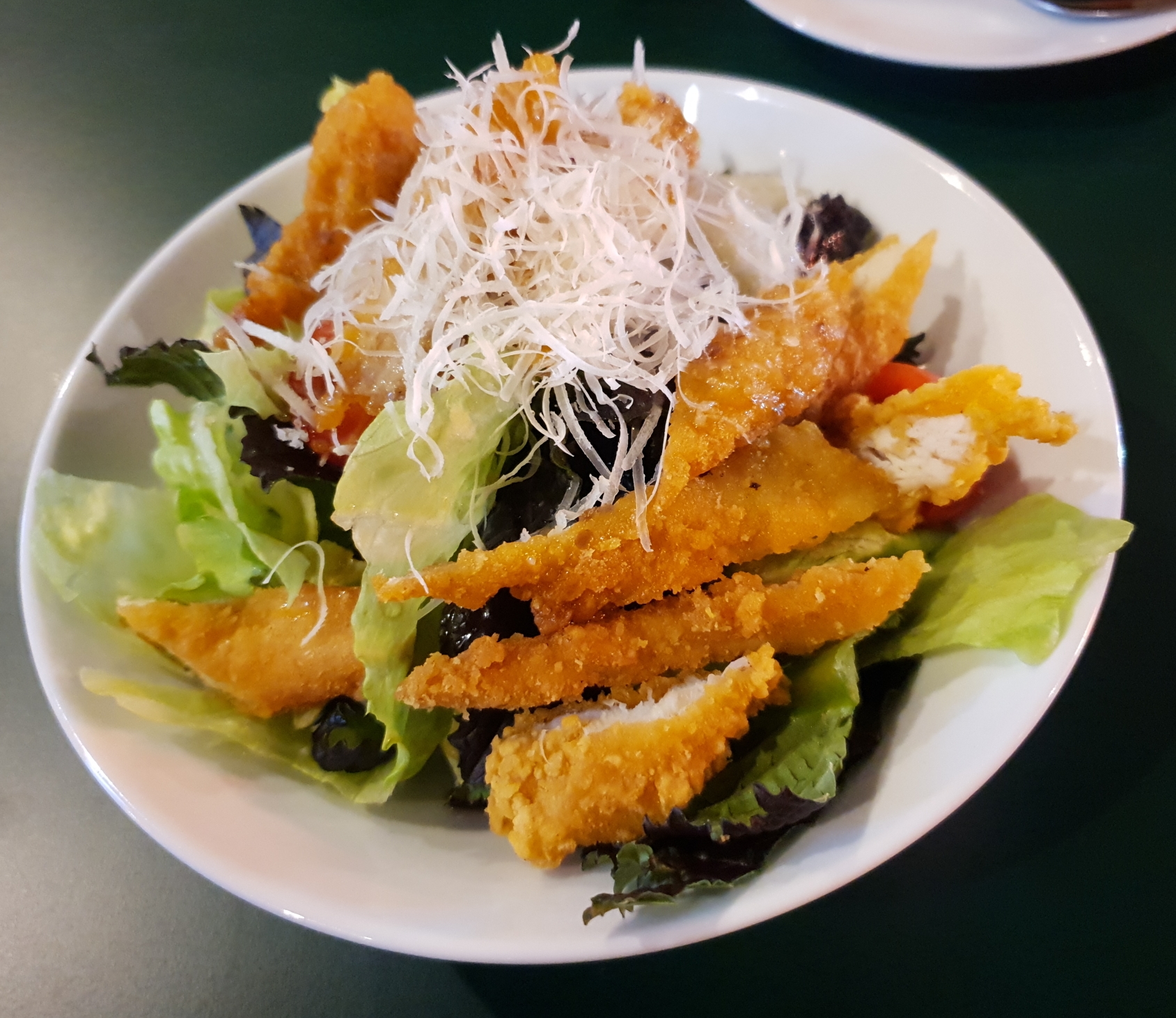 샐러드 위에 치킨도 바삭하면서도 부드러웠습니다.