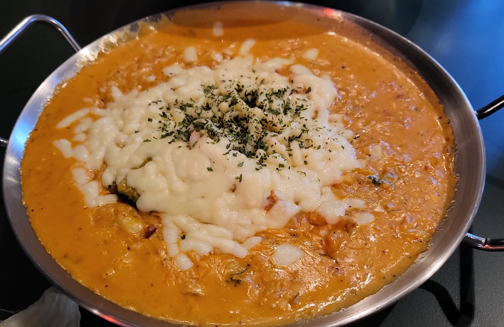 매운걸 못 먹는 지인이 함께 있었는데요, 조금 맵기는 하지만 위에 치즈가 있어서 계속 잘 먹을 수 있다고 했습니다.