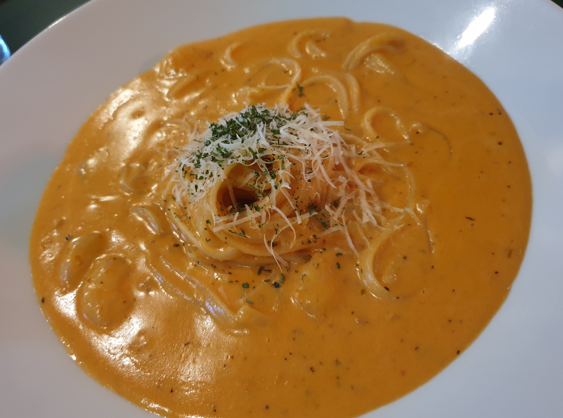 느끼하지 않게 토마토소스가 적당히 섞여있어서 새우와 면을 넉넉한 소스와 함께 먹으면 맛있다는 소리가 절로 나옵니다.